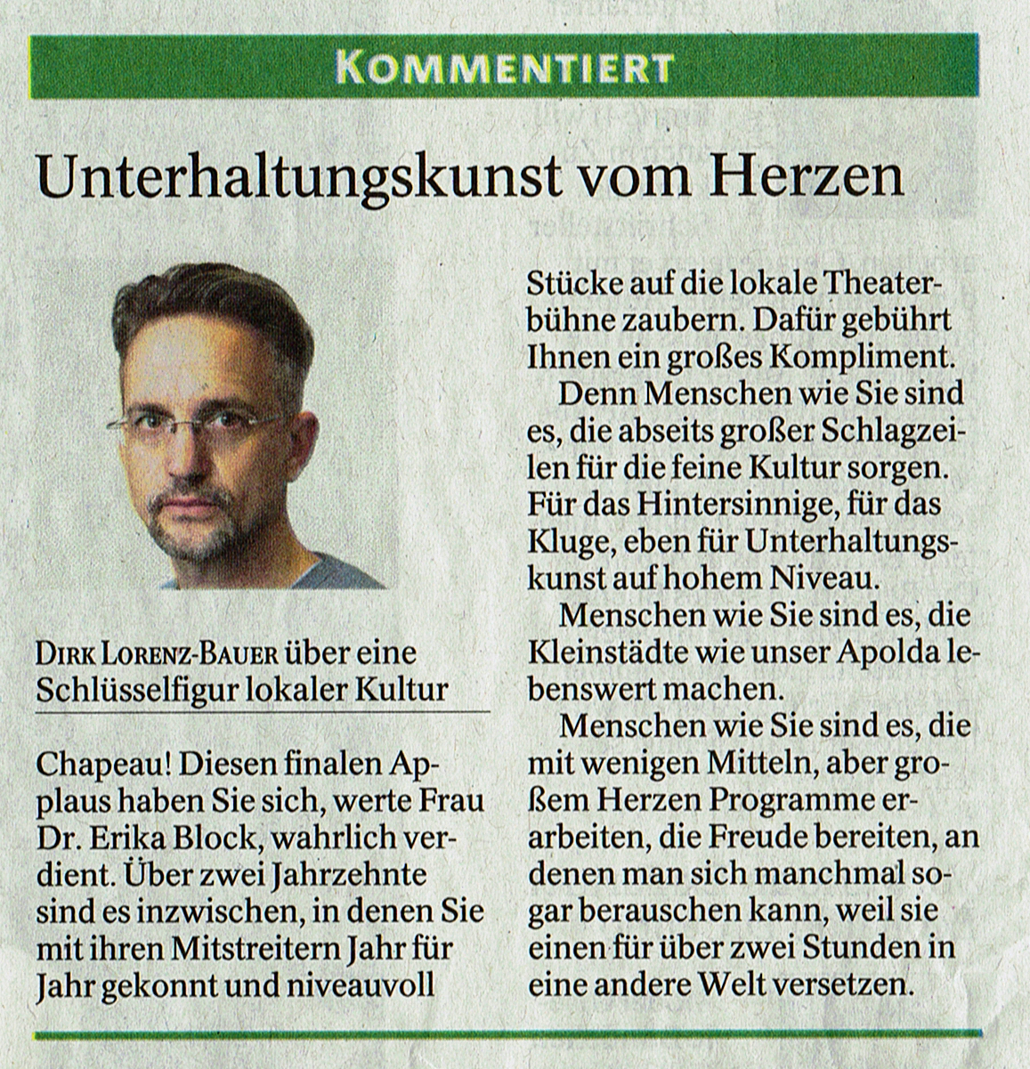 In aufrichtiger Anteilnahme das Ensemble des Apoldaer Amateurtheaters
