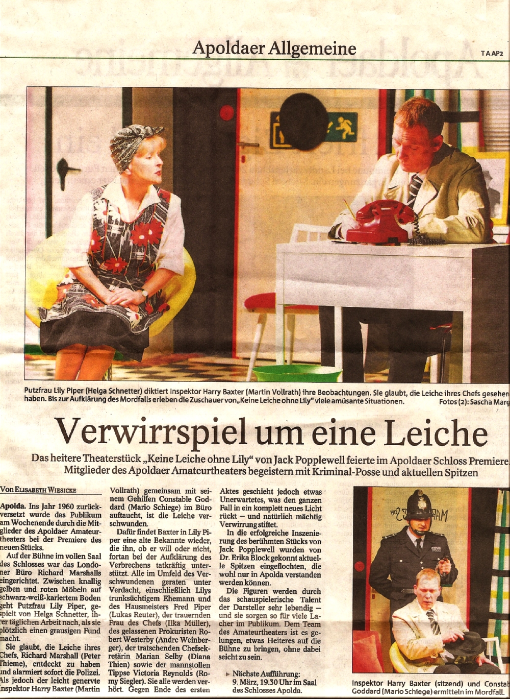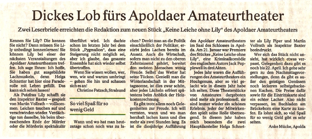 Kriminalkomödie “Keine Leiche ohne Lily” inszeniert. Das Stück ist