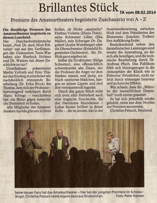 03.02.2014 - 12:16 Uhr Apolda. Das Apoldaer Amateurtheater