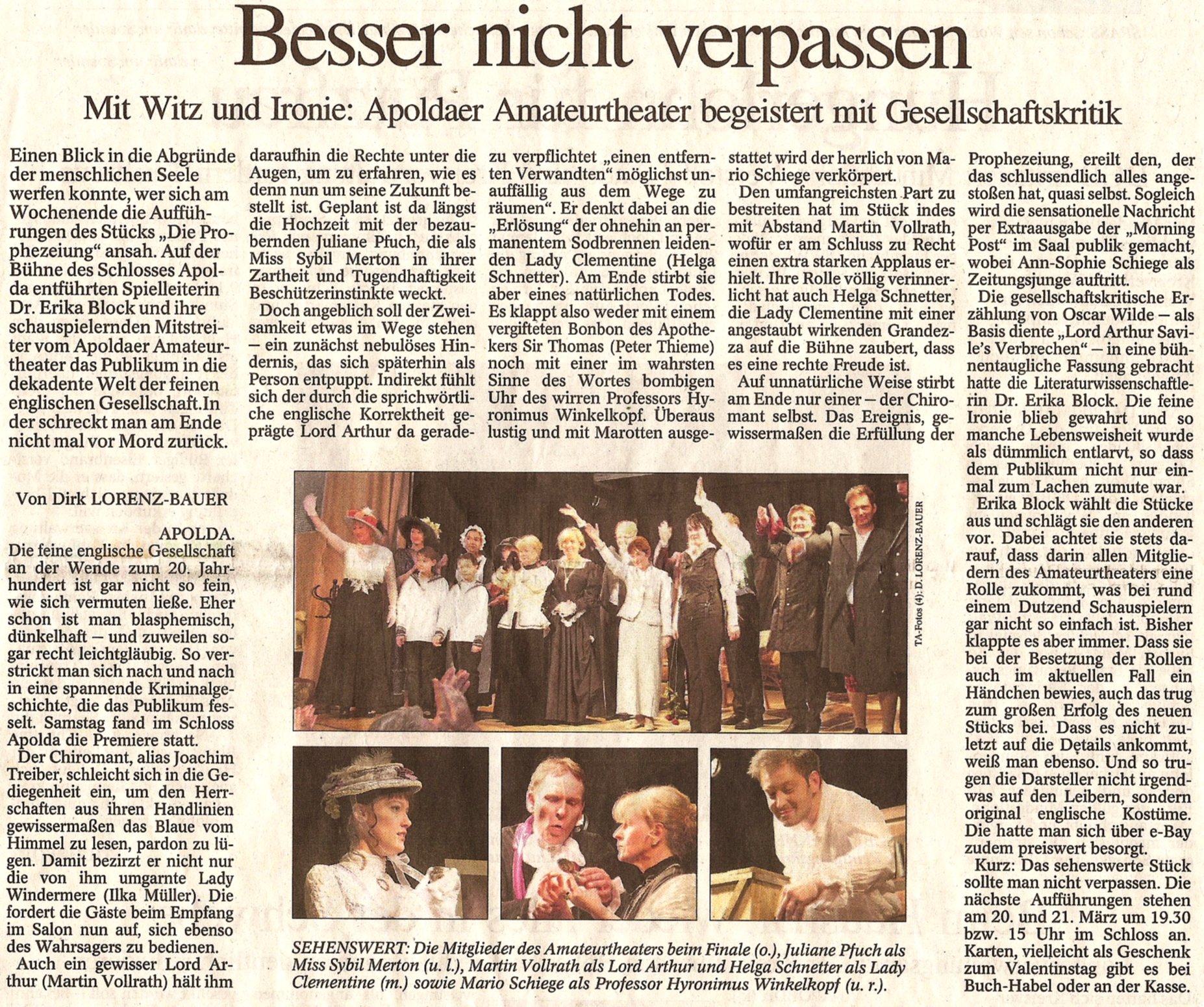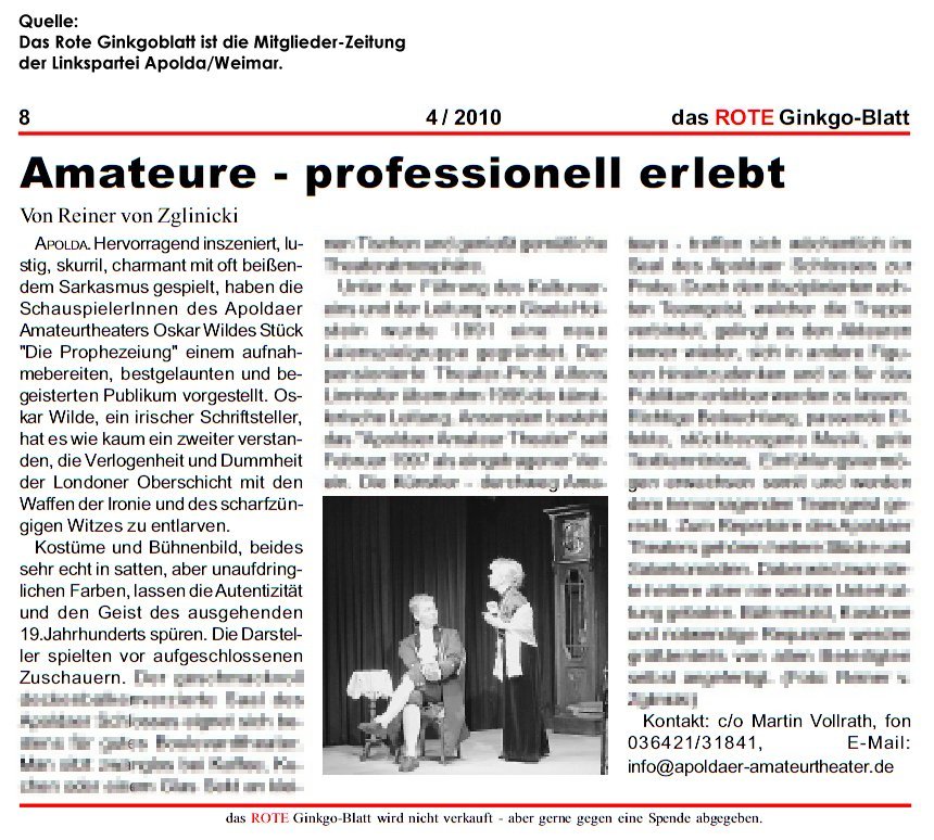 das Apoldaer Amateurtheater eingerichtet von Dr. Erika Block